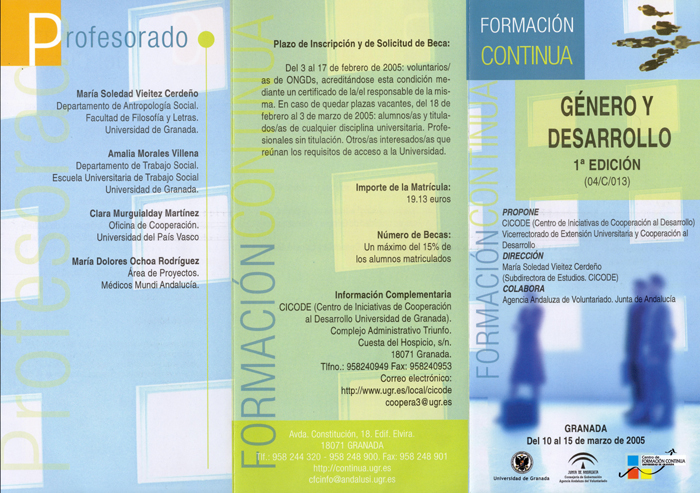 Del 3 al 17 de febrero de 2005: voluntarios/as de ONGDs, acreditándose esta condición mediante un certificado de la/el responsable de la misma. En caso de quedar plazas vacantes, del 18 de febrero al 3 de marzo de 2005: alumnos/as y titutalos/as de cualquier disciplina universitaria. Profesionales sin titulación. Otros/as interesados/as que reúnan los requisitos de acceso a la universidad.