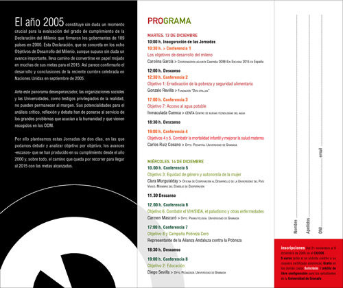 Por ello planteamos estas Jornadas de dos días, en las que podamos debatir y analizar objetivo, por objetivo, los avances -escasos- que se han producido en su cumplimiento desde el año 2000 y, sobre todo, el camino que queda por recorrer para llegar al 2015 con las metas alcanzadas.