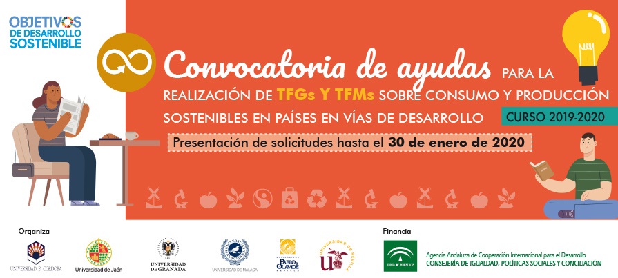Seis universidades andaluzas, con el apoyo de la Agencia Andaluza de Cooperación Internacional para el Desarrollo (AACID), han abierto una convocatoria de ayudas económicas para desarrollar Trabajos Fin de Grado (TFG) o Fin de Máster (TFM) que favorezcan formas de consumo y producción sostenibles en países en vías de desarrollo con el fin de contribuir a las metas establecidas por la Agenda 2030 de Objetivos de Desarrollo Sostenible (ODS) de Naciones Unidas.