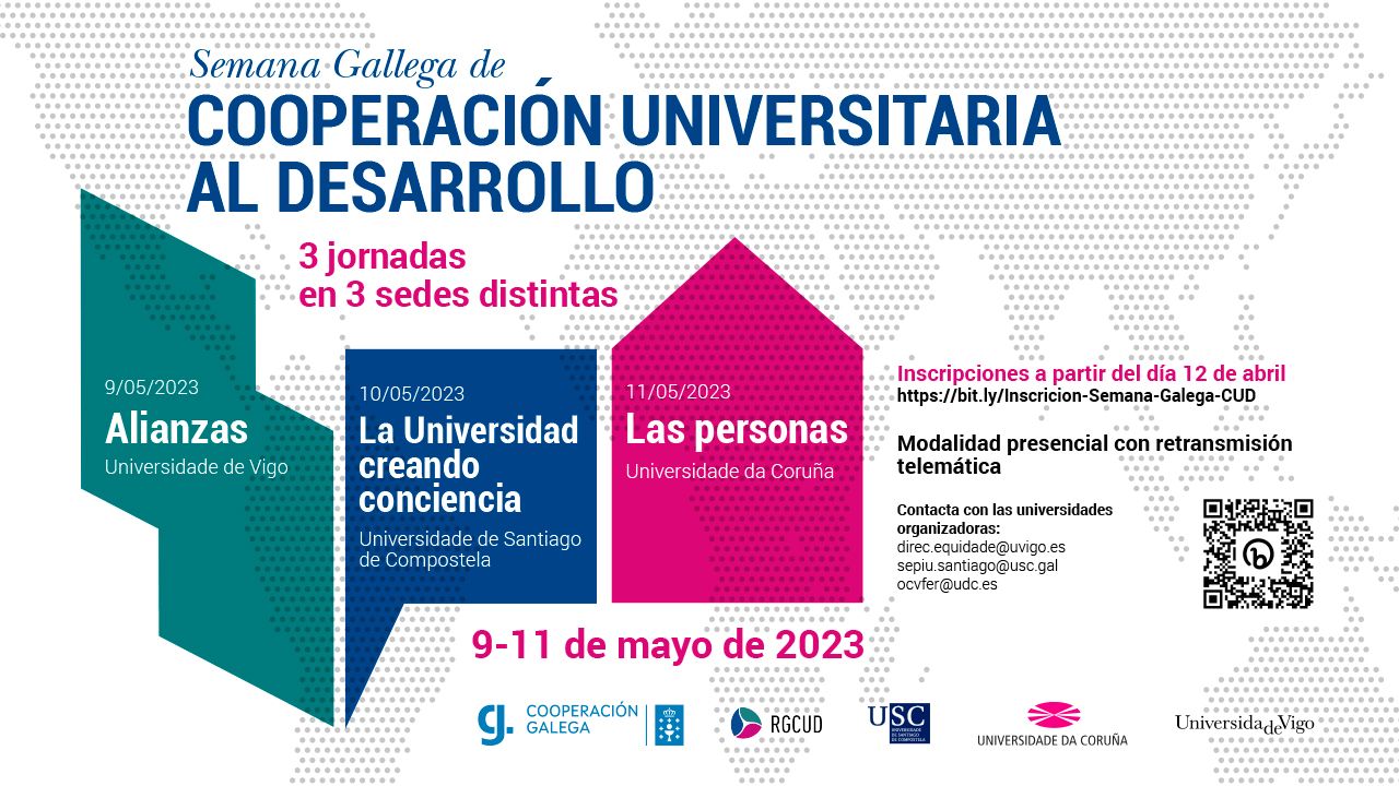 A propuesta de la Universidad de Vigo y en nombre de las tres Universidades públicas gallegas que forman la Rede Galega de Cooperación Universitaria al Desarrollo (RGCUD), se celebra la “Semana Gallega de la Cooperación Universitaria al Desarrollo”.